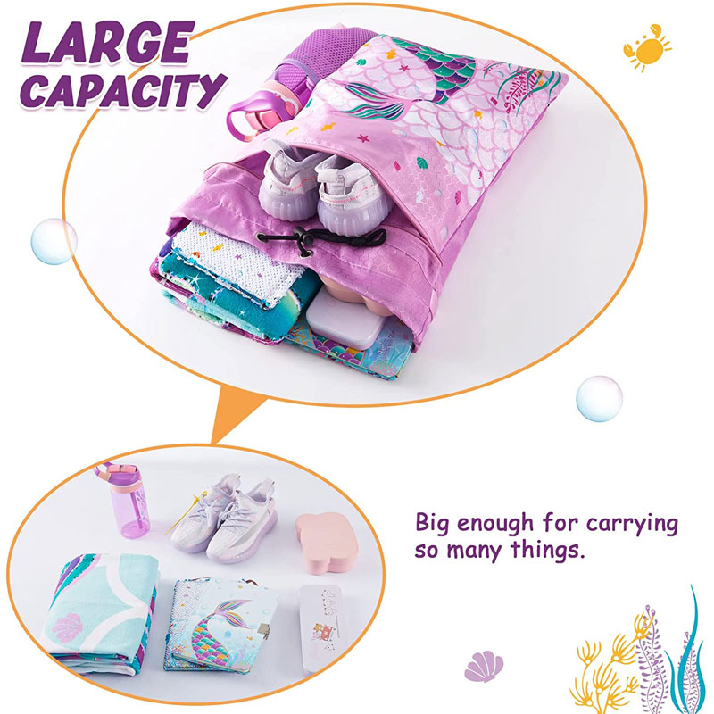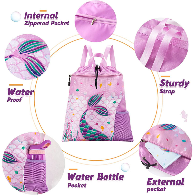 · 【ĦARSA ATTRATIVA】 Iddisinjat u mmanifatturat minna nfusna. Proċess ta 'stampar avvanzat. Bil-kulur tal-isfond tal-vjola, sirena qisha reali tidher fuq il-backpack tat-tfal, imdawra minn bram, żwiemel tal-baħar, u ħaxix tal-baħar. It-tfal se jħobbuha.